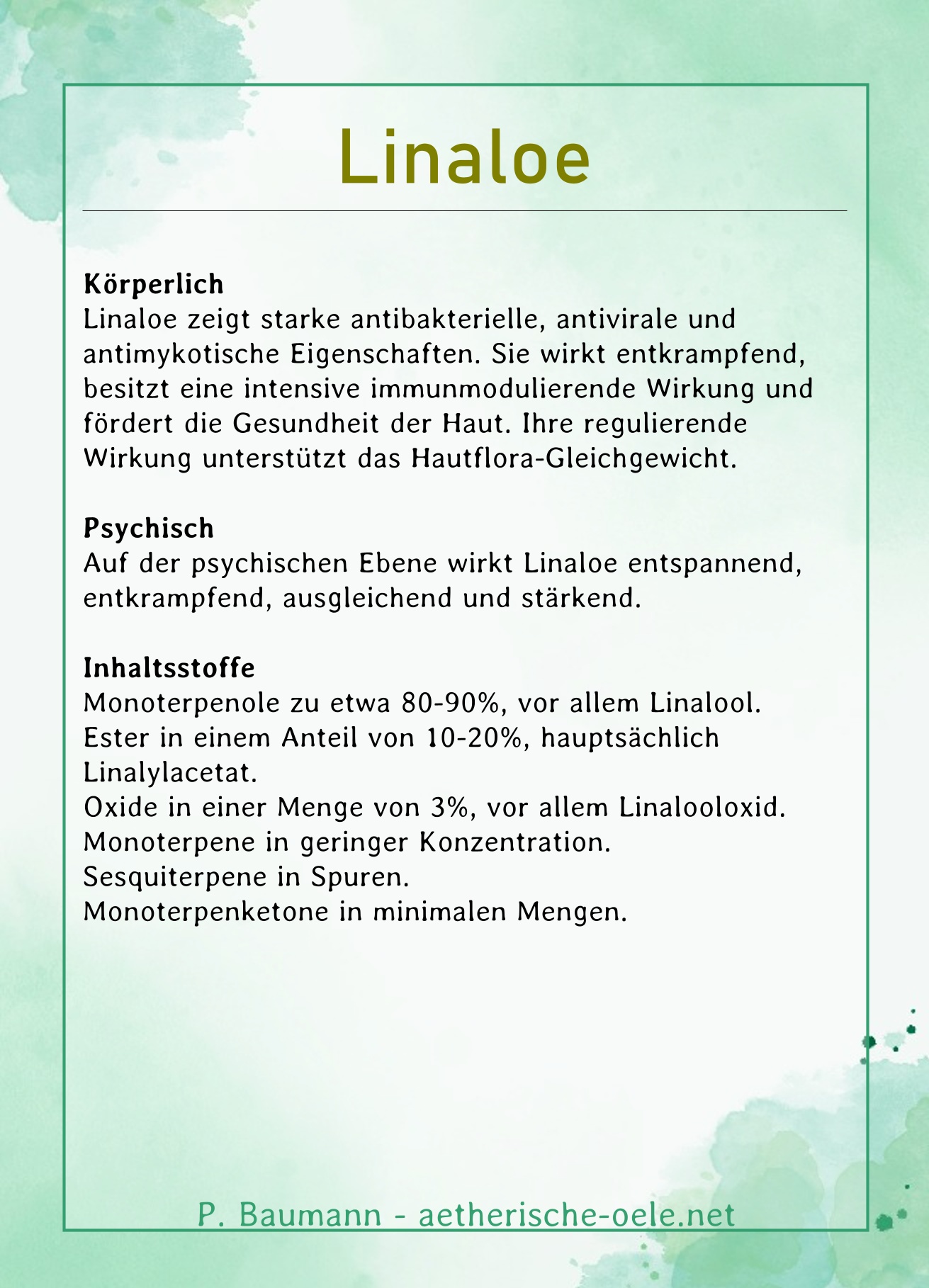 Das ätherische Öl Linaloe